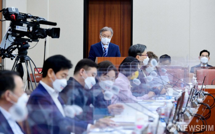 [서울=뉴스핌] 이형석 기자 = 권칠승 중소벤처기업부 장관이 7일 서울 여의도 국회에서 열린 산업통상자원중소벤처기업위원회의 중소벤처기업부 등에 대한 국정감사에서 업무보고를 하고 있다. 2021.10.07 leehs@newspim.com