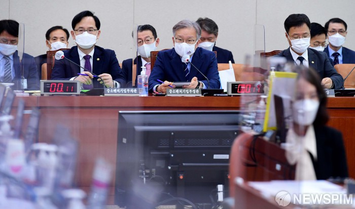 [서울=뉴스핌] 이형석 기자 = 권칠승 중소벤처기업부 장관이 7일 서울 여의도 국회에서 열린 산업통상자원중소벤처기업위원회의 중소벤처기업부 등에 대한 국정감사에서 의원 질의에 답하고 있다. 2021.10.07 leehs@newspim.com