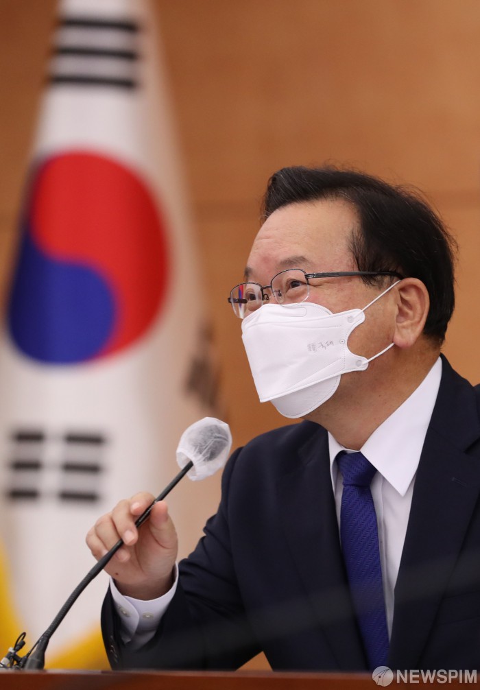 [서울=뉴스핌] 김학선 기자 = 김부겸 국무총리가 7일 서울 종로구 정부서울청사 별관에서 열린 제5차 시민사회위원회에서 인사말을 하고 있다. 2021.10.07 yooksa@newspim.com