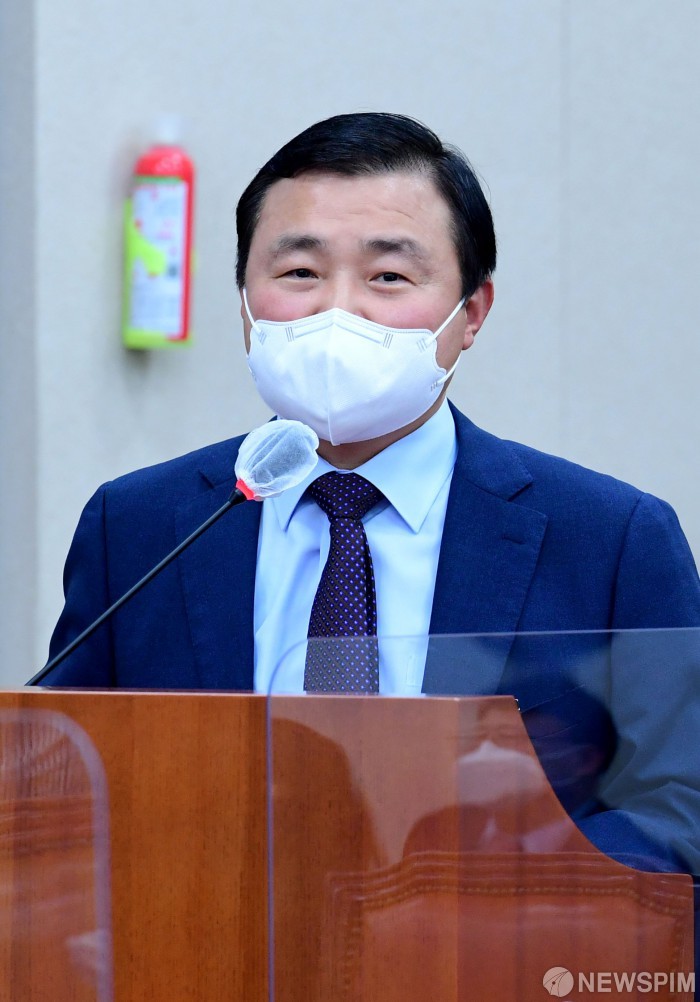 [서울=뉴스핌] 이형석 기자 = 노태문 삼성전자 사장이 7일 서울 여의도 국회에서 열린 산업통상자원중소벤처기업위원회의 중소벤처기업부 등에 대한 국정감사에서 의원 질의에 답하고 있다. 2021.10.07 leehs@newspim.com