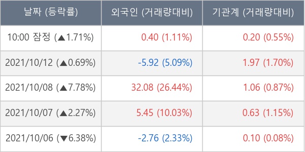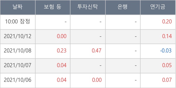 [표] 주요 기관별 순매매량 (단위 만주)