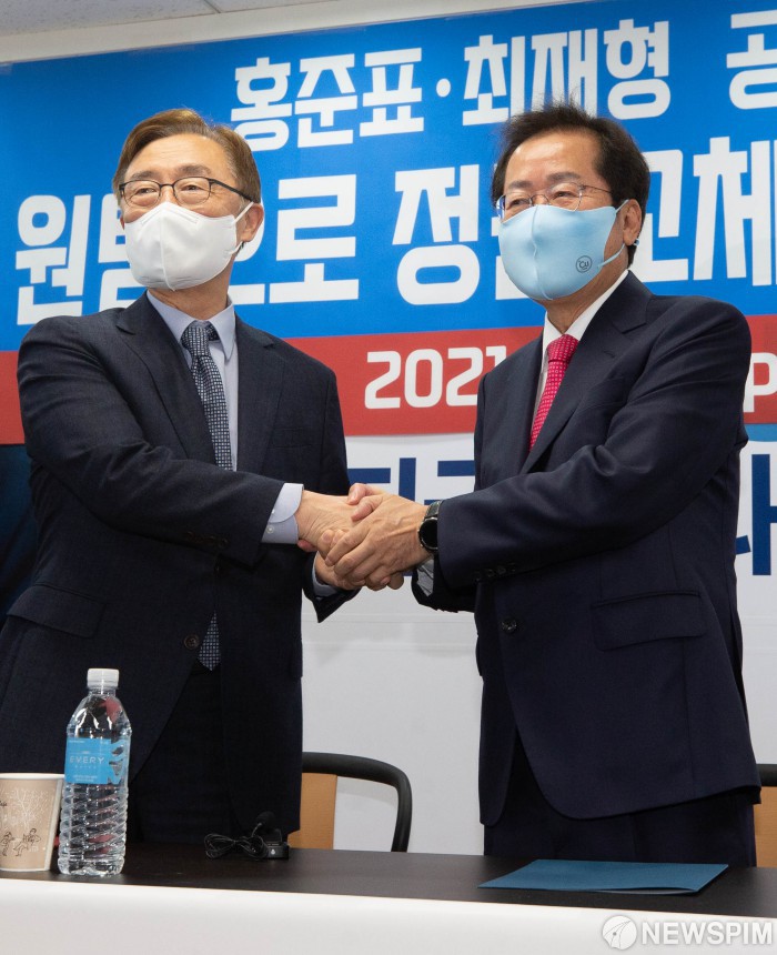 손 맞잡은 최재형-홍준표
