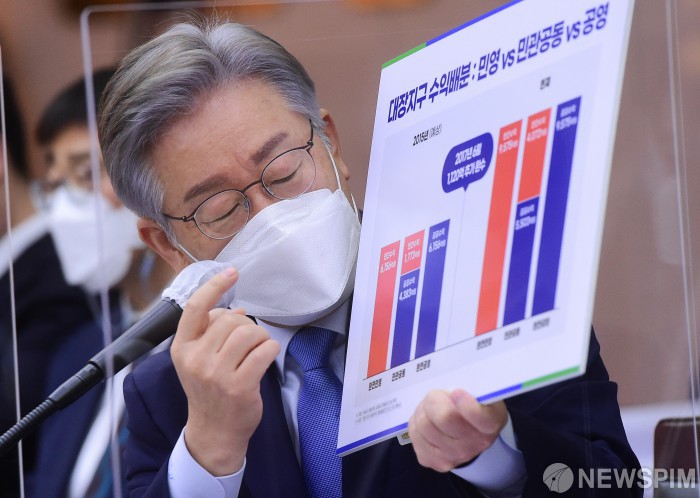 [수원=뉴스핌] 국회사진취재단 = 더불어민주당 대선 후보인 이재명 경기지사가 18일 경기도청에서 열린 국회 행정안전위원회의 경기도에 대한 국정감사에서 의원 질의에 답하고 있다. 2021.10.18 photo@newspim.com