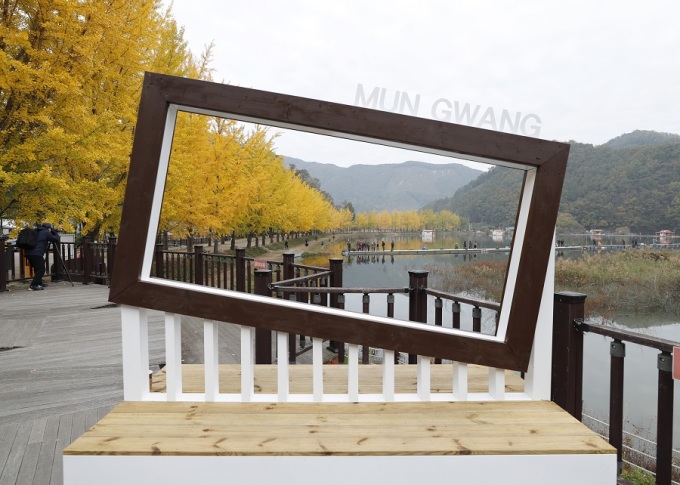 단풍이 절정을 이루는 가을의 문광 은행나무길은 노란 은행잎으로 주변을 온통 황금빛으로 물들인다.