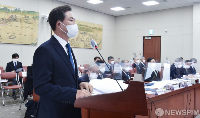 [서울=뉴스핌] 이형석 기자 = 김동원 전북대 총장이 19일 서울 여의도 국회에서 열린 교육위원회의 경북대(경북대병원 포함)ㆍ부산대(부산대병원 포함) 등 2021년도 국정감사에서 업무보고를 하고 있다. 2021.10.19 leehs@newspim.com