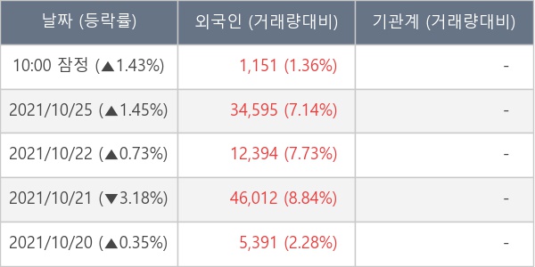 [표] 외국인ㆍ기관 순매매량 (단위 주)