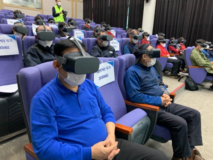이번 교육은 현장 근로자 61명을 두 팀으로 나눠 △가상현실 체험과정 소개 및 장비 활용법 △체험시범 △근로자 체험 △안전대책 설명 순으로 진행되었으며 교육시간은 팀당 30분씩 총 1시간으로 편성됐다.
