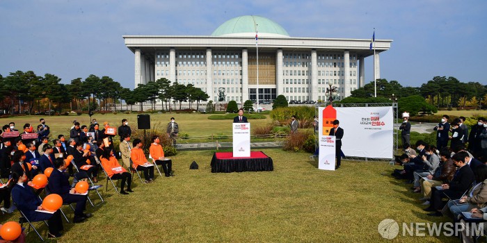 [서울=뉴스핌] 이형석 기자 = 안철수 국민의당 대표가 1일 오전 국회 잔디광장에서 20대 대통령 선거 출마 선언을 하고 있다. 2021.11.01 leehs@newspim.com