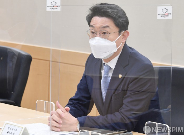[서울=뉴스핌] 이억원 기획재정부 차관이 11일 오전 서울 광화문 정부청사에서 열린 '요소수 범부처 합동 대응 일일상황점검회의'를 주재, 모두발언을 하고 있다. [사진=기획재정부] 2021.11.11 photo@newspim.com