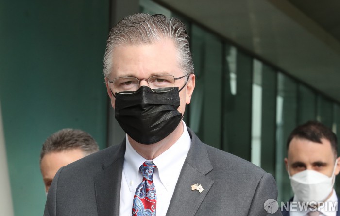 [서울=뉴스핌] 김학선 기자 = 대니얼 크리튼브링크 미국 국무부 동아시아·태평양 담당 차관보가 11일 오전 서울 종로구 외교부 청사로 들어서고 있다. 취임 후 처음으로 방한한 대니얼 크리튼브링크 차관보는 이날 오전 카운터파트인 여승배 외교부 차관보와의 양자 협의 및 업무 오찬을 한다. 이어 오후에는 이성호 외교부 경제외교조정관과 별도로 만나고 최종건 외교부 1차관을 예방한다. 2021.11.11 yooksa@newspim.com