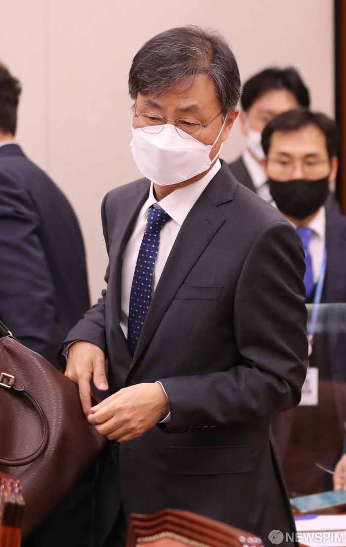 [서울=뉴스핌] 이형석 기자 = 최재해 신임 감사원장이 17일 서울 여의도 국회에서 열린 법제사법위원회 전체회의에 출석하고 있다. 2021.11.17 leehs@newspim.com