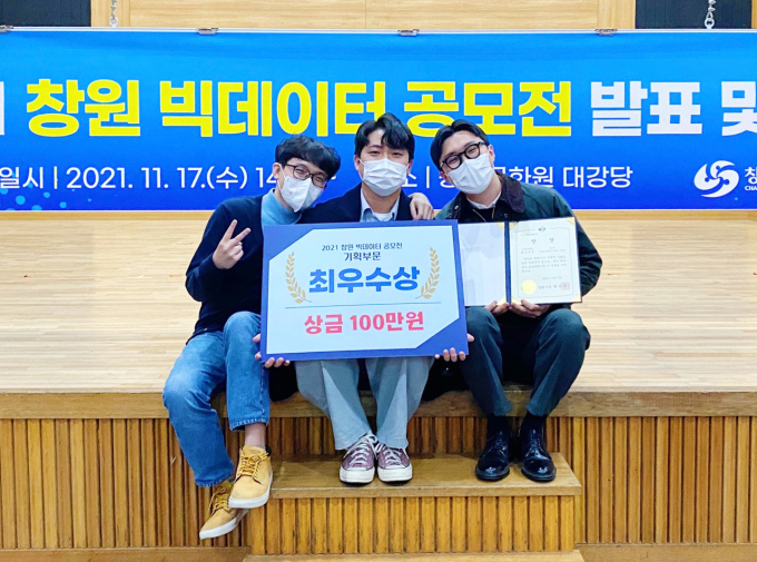 | 2021 창원시 빅데이터 공모전에서 최우수상을 받은 경남대 SDT팀[사진=경남대학교]2021.11.19 news2349@newspim.com |
