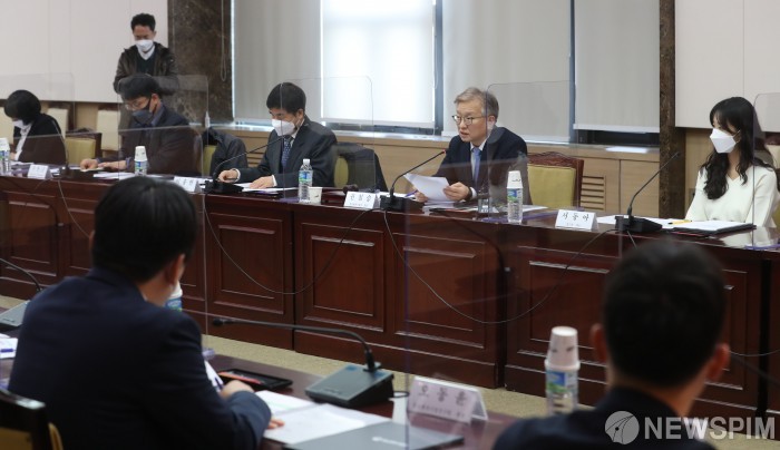 [서울=뉴스핌] 김학선 기자 = 권칠승 중소벤처기업부 장관이 23일 서울 종로구 정부서울청사에서 열린 2021년 제1회 소상공인정책심의회에서 모두발언을 하고 있다. 2021.11.23 yooksa@newspim.com