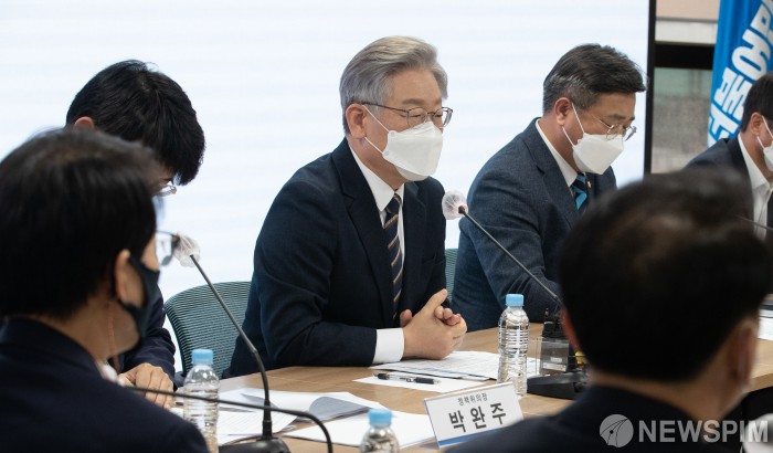 [서울=뉴스핌] 이형석 기자 = 이재명 더불어민주당 대선 후보가 24일 서울 여의도 중앙당사 회의실에서 열린 민생·개혁 입법 추진 간담회에서 모두발언을 하고 있다. 2021.11.24 leehs@newspim.com
