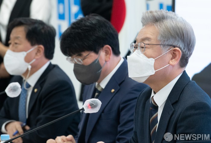 [서울=뉴스핌] 이형석 기자 = 이재명 더불어민주당 대선 후보가 24일 서울 여의도 중앙당사 회의실에서 열린 민생·개혁 입법 추진 간담회에서 모두발언을 하고 있다. 2021.11.24 leehs@newspim.com