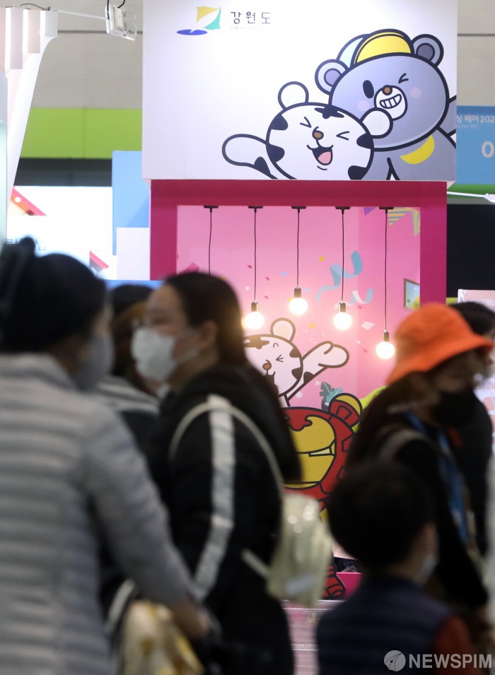 [서울=뉴스핌] 김민지 인턴기자 = 25일 오후 서울 강남구 코엑스에서 열린 2021 캐릭터 라이선싱 페어에서 관람객들이 전시장을 둘러보고 있다. 코로나19로 인해 2년 만에 열린 이번 행사는 오는 28일까지 코엑스C, D1홀에서 열린다. 2021.11.25 kimkim@newspim.com