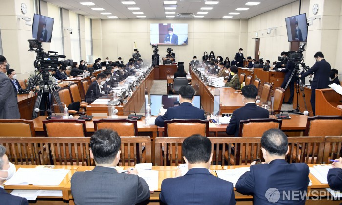 [서울=뉴스핌] 이형석 기자 = 행정안전위원회 전체회의가 전해철 행정안전부 장관, 김창룡 경창청장이 참석한 가운데 28일 여의도 국회에서 열리고 있다. 2021.11.29 leehs@newspim.com