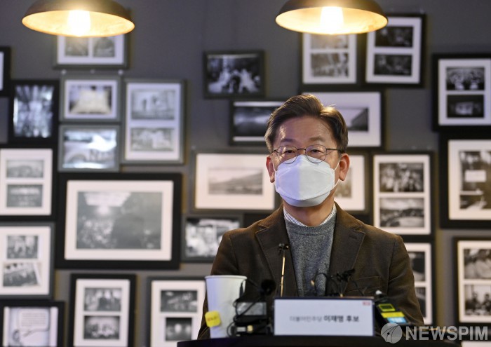 [서울=뉴스핌] 국회사진취재단 = 이재명 더불어민주당 대선 후보가 30일 오후 서울 중구 서울스퀘어에 위치한 기업형 메이커 스페이스 'N15'를 방문해 발언을 하고 있다. 2021.11.30 photo@newspim.com