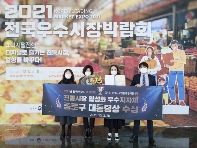 3일 종로구에 따르면 중소벤처기업부 주최로 열린 '2021년 전국우수시장박람회'에서 종로구는 '전통시장 및 상점가 활성화 우수기관'으로 선정돼 대통령상의 영예를 안았다.