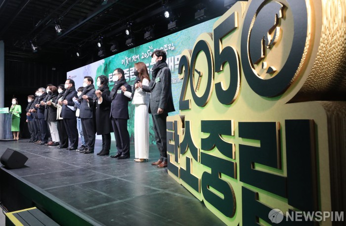 [서울=뉴스핌] 윤창빈 기자 = 김부겸 국무총리가 6일 서울 마포구 문화비축기지에서 열린 탄소중립 주간 개막식 행사에서 참석자들과 함께 기념촬영을 하고 있다. 2021.12.06 pangbin@newspim.com