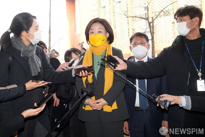 [서울=뉴스핌] 이형석 기자 = 심상정 정의당 대선 후보가 6일 오후 서울 여의도의 한 호텔에서 안철수 국민의당 대선 후보와의 회동에 참석하며 취재진 질문에 답하고 있다. 2021.12.06 leehs@newspim.com