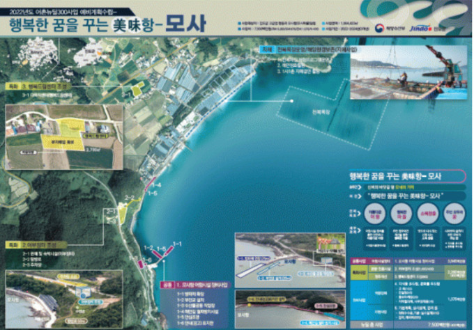 모사항은 방파제 확장 등의 어항시설 정비와 전복 음식 판매·체험·숙박을 위한 어부장터, 청·장년층 교류 공간인 행복드림센터 등을 조성한다.