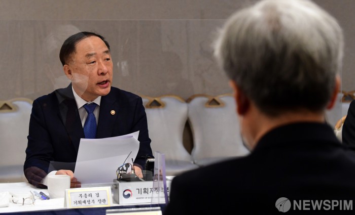 [서울=뉴스핌] 김학선 기자 = 홍남기 경제부총리 겸 기획재정부 장관이 8일 서울 종로구 정부서울청사에서 열린 부동산시장 점검 관계장관회의를 주재하며 발언하고 있다. 2021.12.08 yooksa@newspim.com