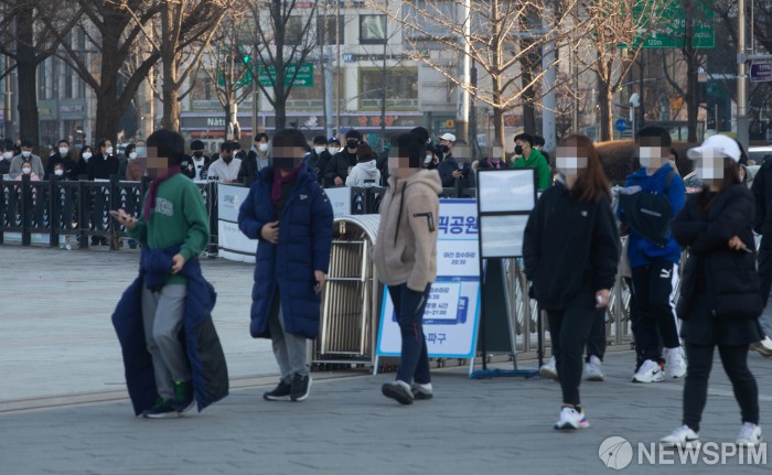 [서울=뉴스핌] 윤창빈 기자 = 코로나19 신규 확진자가 역대 최다인 7천175명을 기록한 8일 오후 서울 송파구 올림픽공원 평화의광장 인근에 마련된 코로나19 임시 선별검사소에서 시민들이 검사를 기다리고 있다 2021.12.08 pangbin@newspim.com