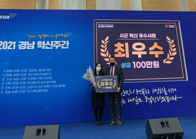 군은 경남도 주관 제3회 '2021년 혁신 및 적극행정 우수사례 도(道) 통합 경진대회'에서 적극행정 분야 최우수상을 수상했다고 8일 밝혔다.