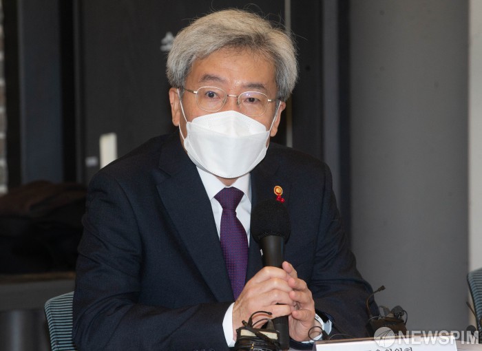 [서울=뉴스핌] 윤창빈 기자 = 고승범 금융위원회 위원장이 9일 오전 서울 강남구 디캠프에서 열린 핀테크 산업 육성지원 간담회에서 인사말을 하고 있다. 2021.12.09 pangbin@newspim.com
