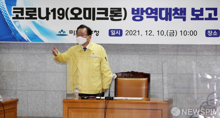 [인천=뉴스핌] 윤창빈 기자 = 김부겸 국무총리가 10일 인천 미추홀구청을 찾아 코로나19(오미크론) 방역대책 보고 및 현장점검회의에 참석하고 있다. 2021.12.10 pangbin@newspim.com