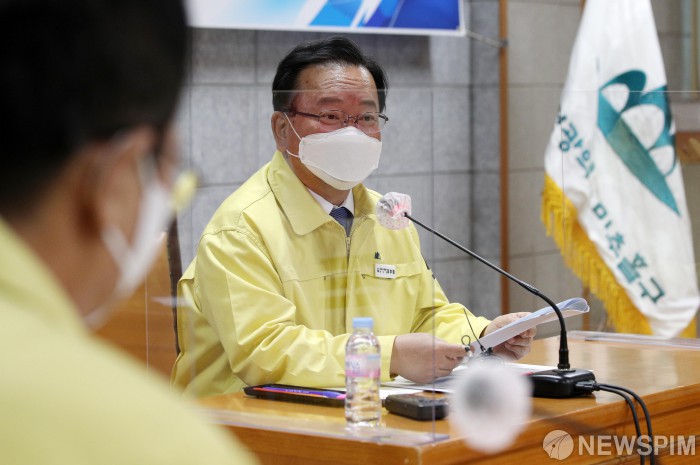 [인천=뉴스핌] 윤창빈 기자 = 김부겸 국무총리가 10일 인천 미추홀구청을 찾아 코로나19(오미크론) 방역대책 보고 및 현장점검회의에서 모두발언을 하고 있다. 2021.12.10 pangbin@newspim.com