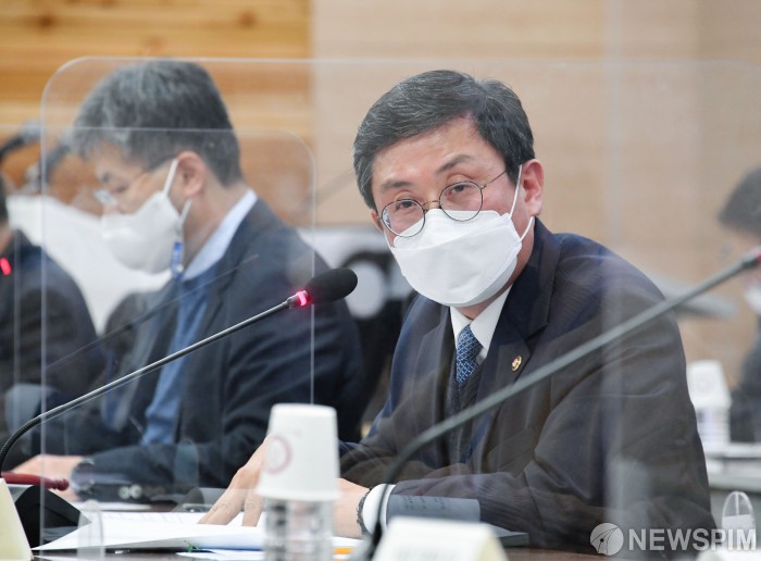 [서울=뉴스핌] 안도걸 기획재정부 차관이 14일 서울 종로구 헌법재판소에서 열린 '국유재산정책심의위원회 (부동산분과위)'에서 모두발언을 하고 있다.[사진=기획재정부 ] 2021.12.14 photo@newspim.com