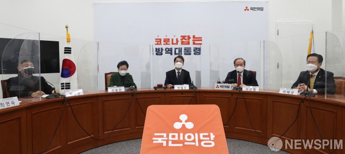 [서울=뉴스핌] 이형석 기자 = 이신범 국민의당 공동선거대책위원장(오른쪽 두번째)이 16일 국회에서 열린 제5차 중앙선거대책위원회의에서 발언하고 있다. 2021.12.16 leehs@newspim.com