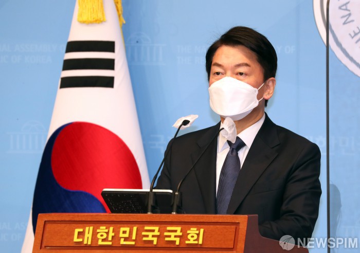 [서울=뉴스핌] 최상수 기자 = 국민의당 안철수 대선후보가 16일 국회 소통관에서 기자회견을 열고 국민통합을 주장하고 있다. 2021.12.16 kilroy023@newspim.com