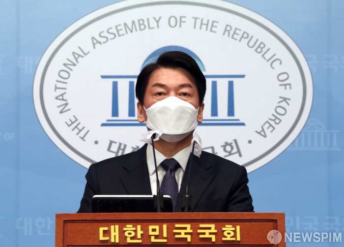 [서울=뉴스핌] 최상수 기자 = 국민의당 안철수 대선후보가 16일 국회 소통관에서 기자회견을 열고 국민통합을 주장하고 있다. 2021.12.16 kilroy023@newspim.com