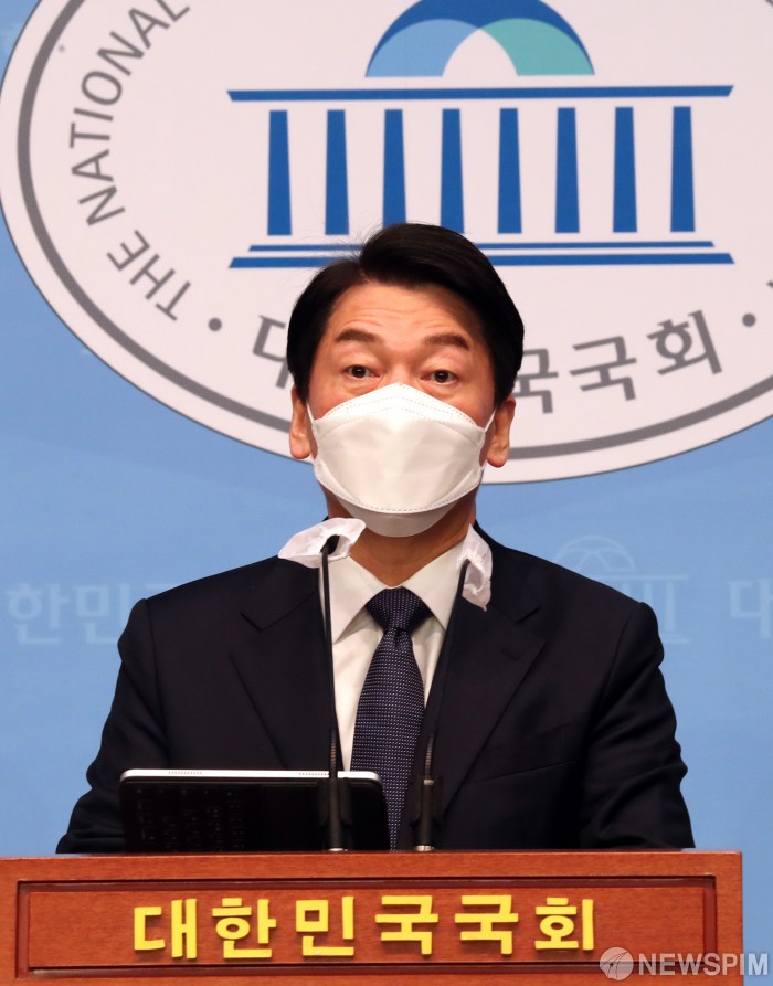 [서울=뉴스핌] 최상수 기자 = 국민의당 안철수 대선후보가 16일 국회 소통관에서 기자회견을 열고 국민통합을 주장하고 있다. 2021.12.16 kilroy023@newspim.com