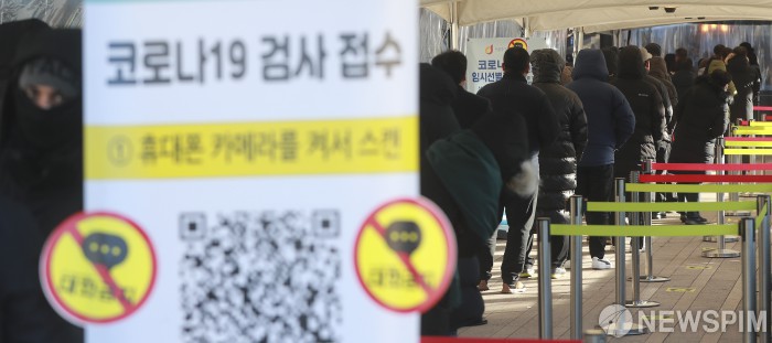 [서울=뉴스핌] 이형석 기자 = 서울의 최저 기온이 영하 6도를 기록한 18일 오전 서울 중구 서울광장 임시선별검사소에서 시민들이 두꺼운 옷을 입고 검사를 받기 위해 줄을 서 있다. 중앙방역대책본부는 코로나19 신규 확진자는 총 7,314명, 총 누적 확진자 수는 558,864명 이라고 밝혔다. 2021.12.18 leehs@newspim.com