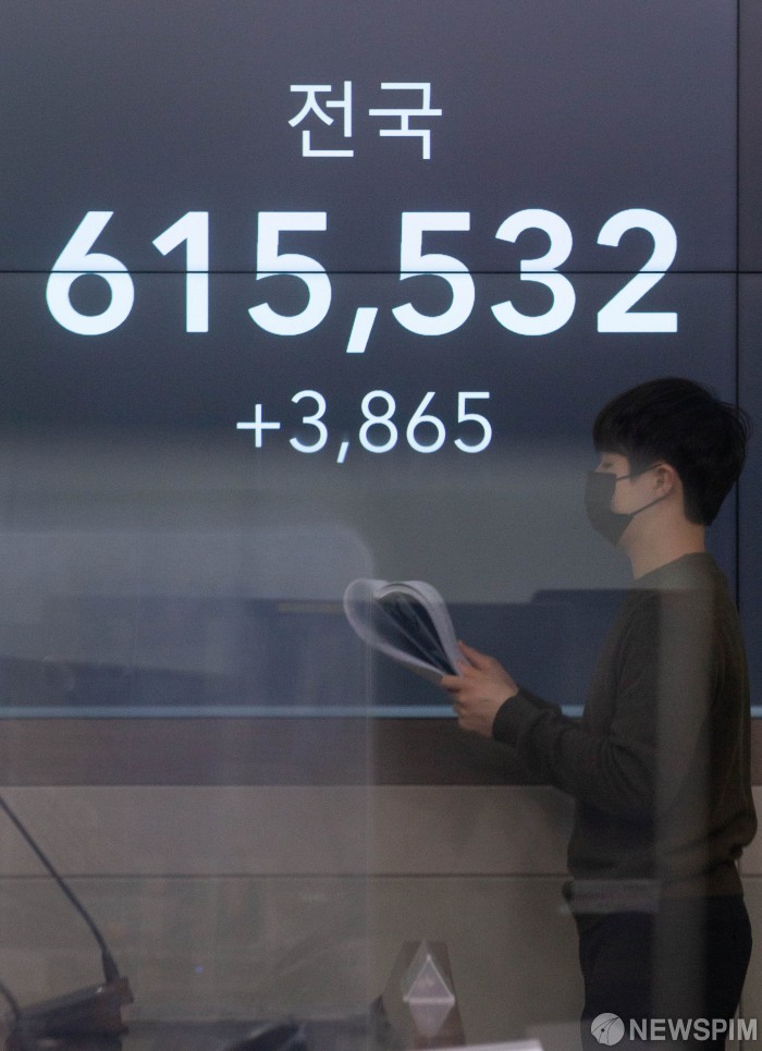 [성남=뉴스핌] 윤창빈 기자 = 28일 오후 경기 성남시 성남시청 재난안전상황실 전광판에 코로나 신규 확진자와 누적 확진자가 표시되고 있다. 이날 0시 기준 코로나19 신규 확진자는 3865명을 기록했다. 3000명대 확진자는 지난달 30일 3032명 이후 28일 만이다. 2021.12.28 pangbin@newspim.com