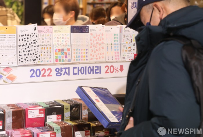 [서울=뉴스핌] 김민지 인턴기자 = 28일 오후 서울 종로구 교보문고 광화문점에서 시민들이 2022년 다이어리, 달력 등을 살펴보고 있다. 2021.12.28 kimkim@newspim.com