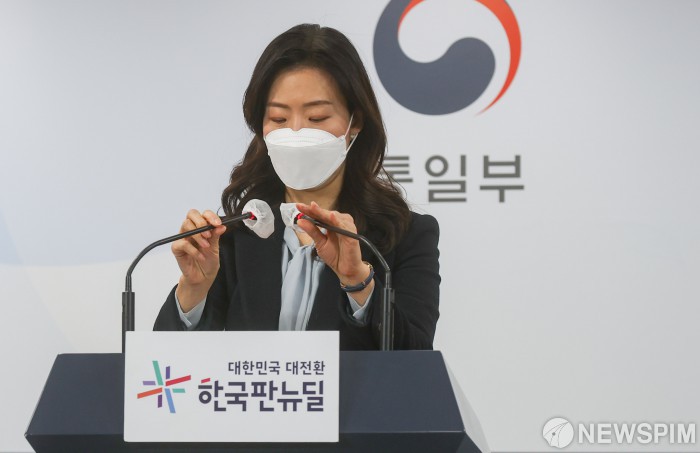 [서울=뉴스핌] 최상수 기자 = 이종주 통일부 대변인이 3일 오전 서울 종로구 정부서울청사에서 정례 브리핑을 하고 있다. 2022.01.03 kilroy023@newspim.com