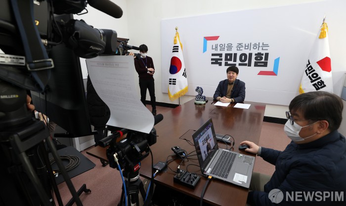[서울=뉴스핌] 최상수 기자 = 이준석 국민의힘 대표가 3일 오전 서울 여의도 국회에서 2022년 신년인사를 하고 있다. 2022.01.03 kilroy023@newspim.com