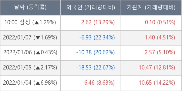 [표] 주요 기관별 순매매량 (단위 만주)