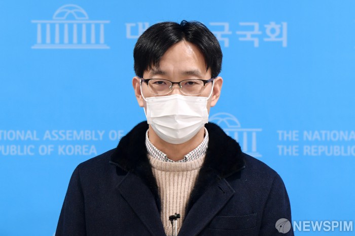 [서울=뉴스핌] 이형석 기자 = 코로나19 확산으로 인한 정부의 방역지침과 관련 '방역패스 집행정지' 소송대리인단 조두형 교수가 17일 오후 서울 여의도 국회 소통관에서 기자회견을 열고 발언하고 있다. 2022.01.17 leehs@newspim.com