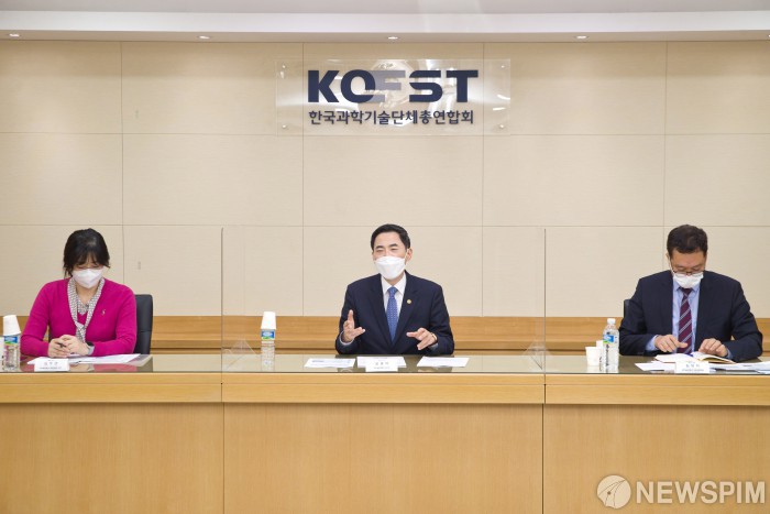 [서울=뉴스핌] 용홍택 과학기술정보통신부 제1차관이 18일 오전 서울 강남구 한국과학기술회관에서 열린 '과학기술정보통신부-한국과학기술단체총연합회 신년간담회' 에 참석해 과학기술 정책현안을 논의하고 있다.[사진= 과학기술정보통신부 ] 2022.01.18 photo@newspim.com
