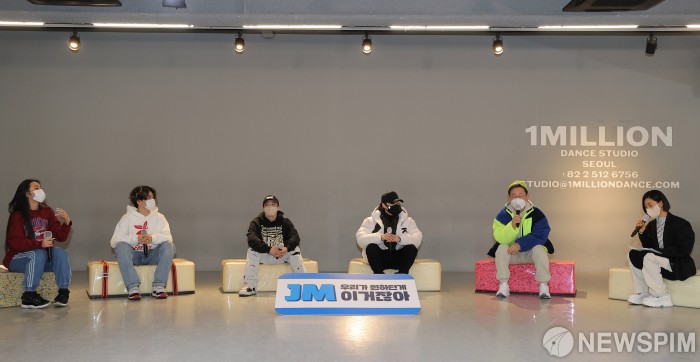 [서울=뉴스핌] 국회사진취재단 = 이재명 더불어민주당 후보가 20일 서울 성동구 원밀리언 댄스 스튜디오에서 열린 ‘JM, 우리가 원하던게 이거잖아’간담회에서 리아킴, 백구영, 영제이, 시미즈, 하리무, 루트와 댄서들을 바라보는 시각과 근무환경 등 고충을 청취하고 이야기를 나누고 있다. 2022.01.20 photo@newspim.com