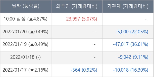 [표] 외국인ㆍ기관 순매매량 (단위 주)