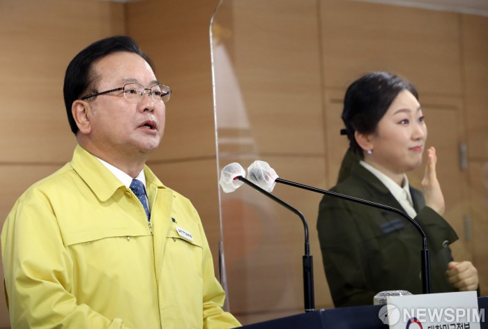 [서울=뉴스핌] 김학선 기자 = 김부겸 국무총리가 24일 서울 종로구 정부서울청사에서 오미크론 변이 확산에 따른 방역대책과 관련해 대국민 담화를 발표하고 있다. 김 총리는 설 연휴 동안 고향방문을 자제해 줄 것을 당부했다. 2022.01.24 yooksa@newspim.com