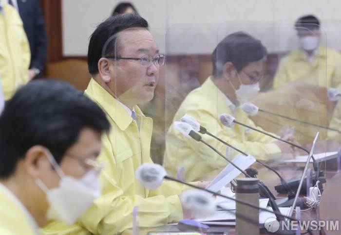 [서울=뉴스핌] 김학선 기자 = 김부겸 국무총리가 26일 서울 종로구 정부서울청사에서 열린 코로나19 대응 중앙재난안전대책본부 회의 겸 안전상황점검회의를 주재하며 발언하고 있다. 2022.01.26 yooksa@newspim.com