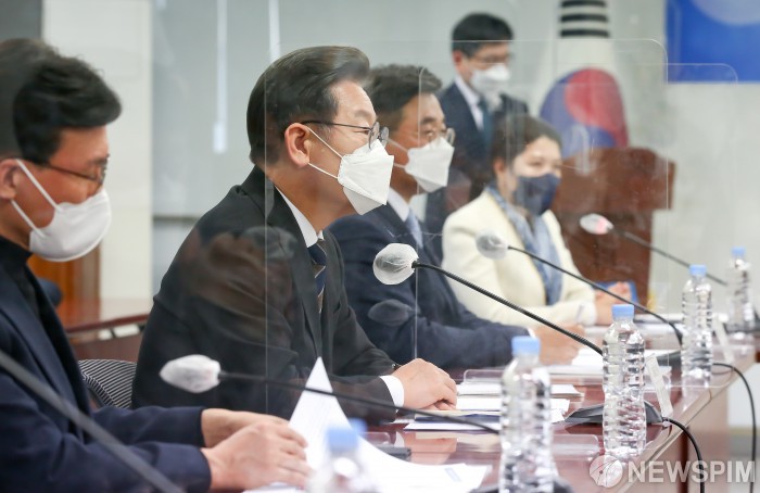 [서울=뉴스핌] 국회사진취재단 = 더불어민주당 이재명 대선후보가 28일 서울 용산구 청파로 대한의사협회를 방문해 모두발언을 하고 있다. 2022.01.28 photo@newspim.com